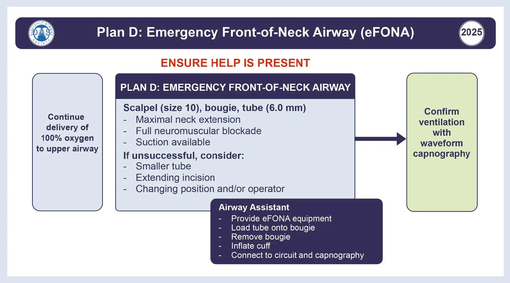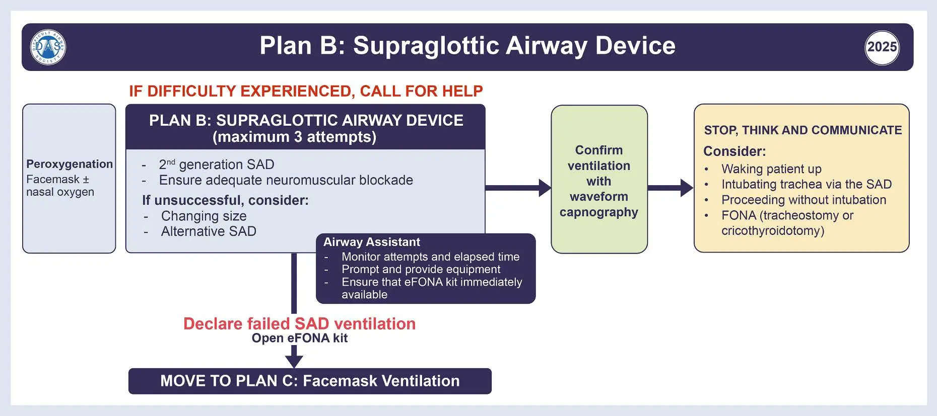 Ahmad, I., El-Boghdadly, K., Iliff, H., Dua, G., Higgs, A., Huntington, M., Mir, F., Nouraei, S. A. R., O’Sullivan, E. P., Patel, A., Rivett, K., & McNarry, A. F. (2025). Difficult Airway Society 2025 guidelines for management of unanticipated difficult tracheal intubation in adults. British Journal of Anaesthesia. https://doi.org/10.1016/j.bja.2025.10.006