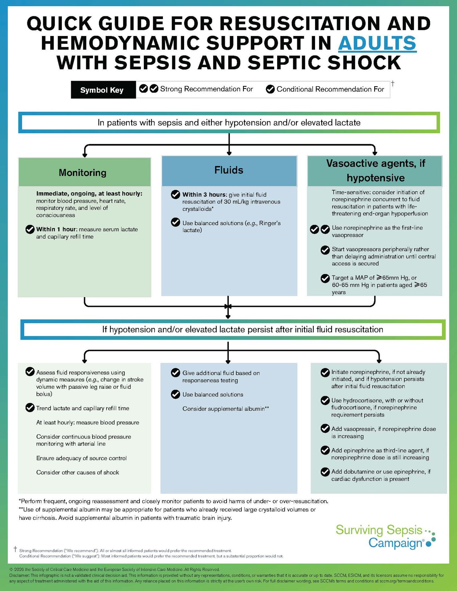 Prescott, H. C., Antonelli, M., Alhazzani, W., Møller, M. H., Alshamsi, F., Azevedo, L. C. P., Belley-Cote, E., De Waele, J., Derde, L., Dionne, J. C., Evans, L., Gershengorn, H. B., Hodgson, C. L., Honarmand, K., Kesecioglu, J., McIntyre, L., Mer, M., Nunnally, M. E., Oczkowski, S. J. W., … Coopersmith, C. M. (2026). Surviving Sepsis Campaign: International Guidelines for Management of Sepsis and Septic Shock 2026. Critical Care Medicine. https://doi.org/10.1097/CCM.0000000000007075